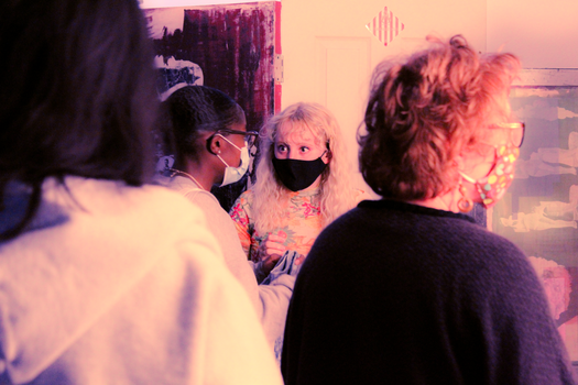 Studio 352 was open to the public from 6-11 PM on April 16th. We transformed the inside of the How Bazar into an interactive experience with art installations and projection mapping. A pop up shop of Twin Blush Collection 1, prints, and artwork were available for sale. The event also featured live DJ's, a dance floor, food catered by Chef JJ's Creations, an interactive community collage wall, and bring-your-own-clothes free screen-printing of Twin Blush designs.