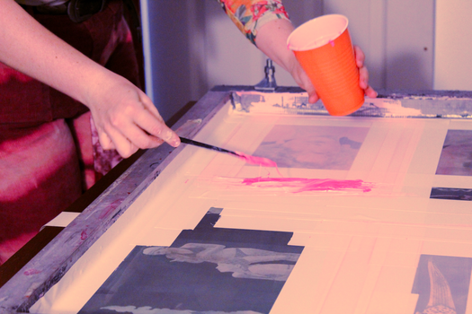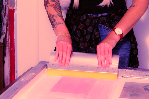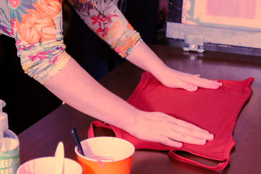 I gave everyone a choice of my two most popular Twin Blush designs. We collaborated to figure out the placement and orientation of the design on their garment. I pulled the first two passes of the print and they pulled the last pass. Before they left I made sure everyone who screen-printed had the instructions for how to cure and take care of their newly printed garment.